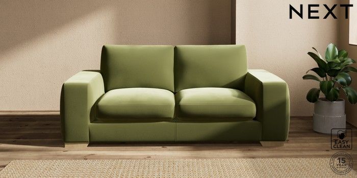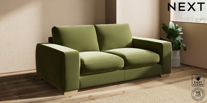 7.2.10 Houghton Deep Sit 3 Seater Small Sofa Plush Velvet Easy Clean Mid Olive Green Large Square Angle - Light | Made Click here to use our website with more accessibility support, for example screen readers