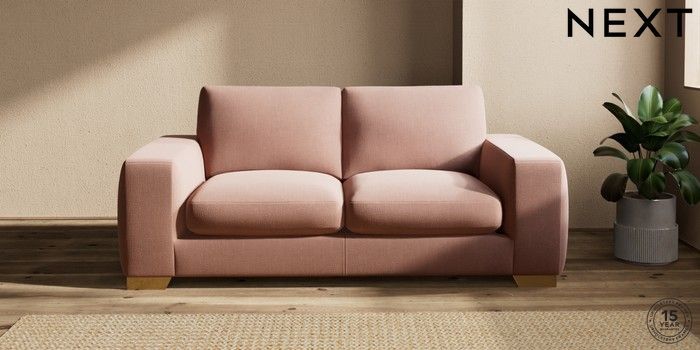 7.2.10 Houghton Deep Sit 3 Seater Small Sofa Relaxed Linen Look Light Rust Brown Large Square Angle - Brushed Brass | Made Click here to use our website with more accessibility support, for example screen readers