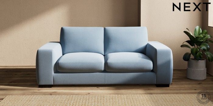 7.2.10 Houghton Deep Sit 3 Seater Small Sofa Relaxed Linen Look Mid Blue Large Square Angle - Dark | Made Click here to use our website with more accessibility support, for example screen readers