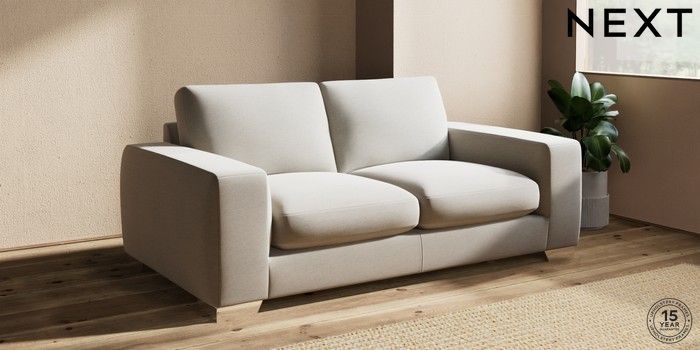 7.2.10 Houghton Deep Sit 3 Seater Small Sofa Ripple Chenille Light Natural Large Square Angle - Chrome Metal | Made Click here to use our website with more accessibility support, for example screen readers