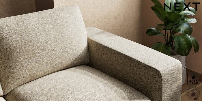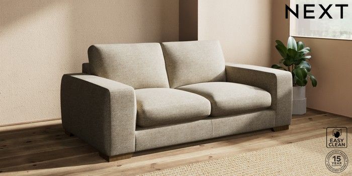 7.2.10 Houghton Deep Sit 3 Seater Small Sofa Woven Chenille Easy Clean Mid Natural Large Square Angle - Mid | Made Click here to use our website with more accessibility support, for example screen readers