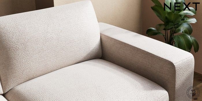 7.2.10 Houghton Deep Sit 3 Seater Sofa Boucle Chenille Light Natural Large Square Angle - Chrome Metal | Made Click here to use our website with more accessibility support, for example screen readers