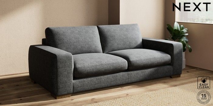 7.2.10 Houghton Deep Sit 3 Seater Sofa Boucle Weave Easy Clean Charcoal Grey Large Square Angle - Mid | Made Click here to use our website with more accessibility support, for example screen readers