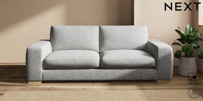 7.2.10 Houghton Deep Sit 3 Seater Sofa Chunky Boucle Easy Clean Light Grey Large Square Angle - Light | Made Click here to use our website with more accessibility support, for example screen readers