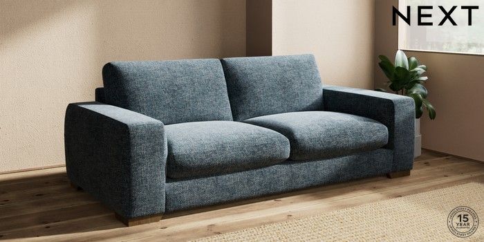 7.2.10 Houghton Deep Sit 3 Seater Sofa Chunky Chenille Dark Navy Blue Large Square Angle - Mid | Made Click here to use our website with more accessibility support, for example screen readers