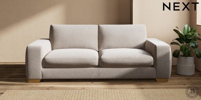7.2.10 Houghton Deep Sit 3 Seater Sofa Chunky Chenille Light Dove Large Square Angle - Brushed Brass | Made Click here to use our website with more accessibility support, for example screen readers
