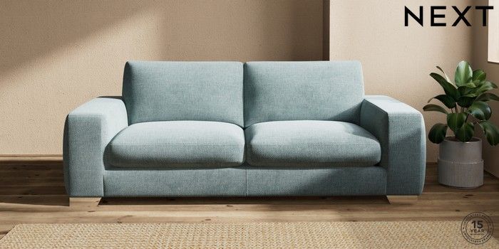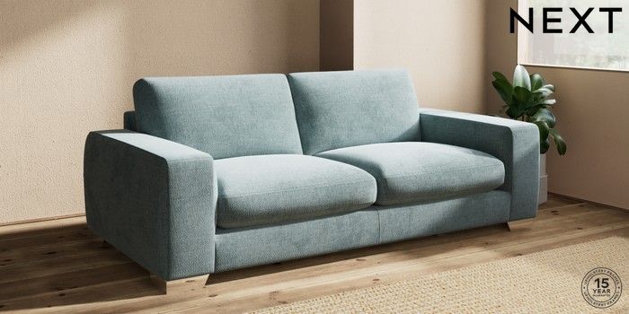 7.2.10 Houghton Deep Sit 3 Seater Sofa Chunky Chenille Light Teal Green Large Square Angle - Chrome Metal | Made Click here to use our website with more accessibility support, for example screen readers