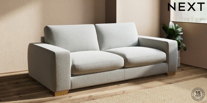 7.2.10 Houghton Deep Sit 3 Seater Sofa Chunky Texture Dove Large Square Angle - Brushed Brass | Made Click here to use our website with more accessibility support, for example screen readers