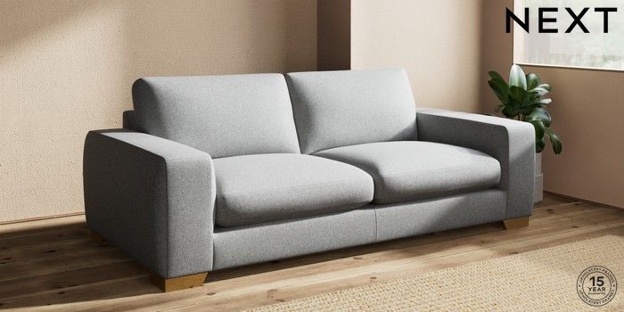 7.2.10 Houghton Deep Sit 3 Seater Sofa Chunky Weave Mid Grey Large Square Angle - Brushed Brass | Made Click here to use our website with more accessibility support, for example screen readers