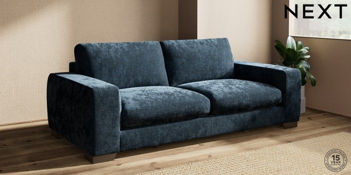 7.2.10 Houghton Deep Sit 3 Seater Sofa Distressed Velour Midnight Blue Large Square Angle - Gunmetal | Made Click here to use our website with more accessibility support, for example screen readers