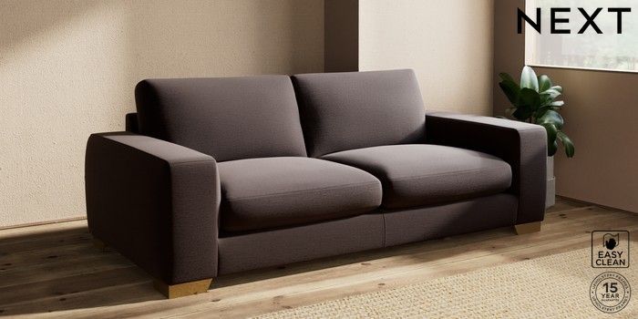 7.2.10 Houghton Deep Sit 3 Seater Sofa Fine Chenille Easy Clean Chocolate Brown Large Square Angle - Brushed Brass | Made Click here to use our website with more accessibility support, for example screen readers