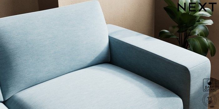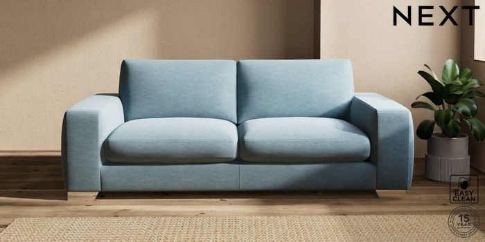 7.2.10 Houghton Deep Sit 3 Seater Sofa Fine Chenille Easy Clean Mid Blue Large Square Angle - Chrome Metal | Made Click here to use our website with more accessibility support, for example screen readers