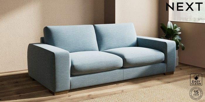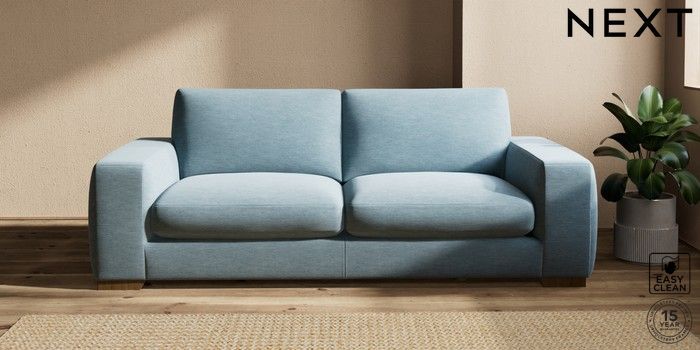 7.2.10 Houghton Deep Sit 3 Seater Sofa Fine Chenille Easy Clean Mid Blue Large Square Angle - Mid | Made Click here to use our website with more accessibility support, for example screen readers