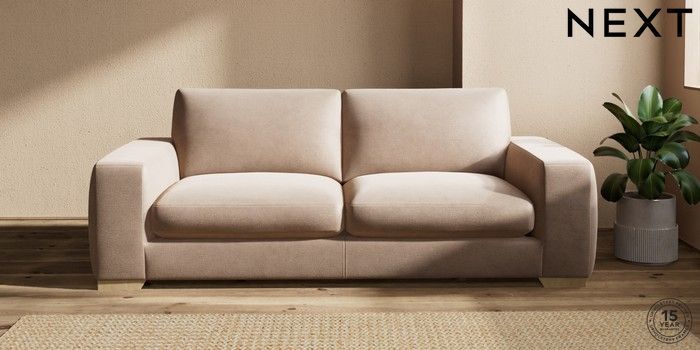 7.2.10 Houghton Deep Sit 3 Seater Sofa Luxe Chenille Mid Natural Large Square Angle - Light | Made Click here to use our website with more accessibility support, for example screen readers