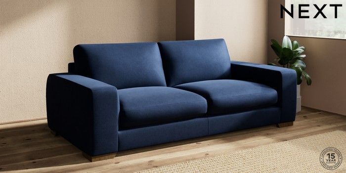 7.2.10 Houghton Deep Sit 3 Seater Sofa Luxe Chenille Navy Blue Large Square Angle - Mid | Made Click here to use our website with more accessibility support, for example screen readers