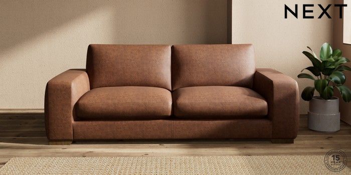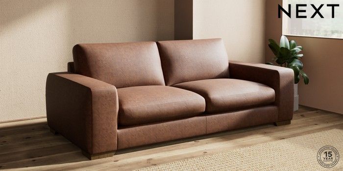 7.2.10 Houghton Deep Sit 3 Seater Sofa Monza Faux Leather Easy Clean Chestnut Brown Large Square Angle - Mid | Made Click here to use our website with more accessibility support, for example screen readers