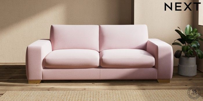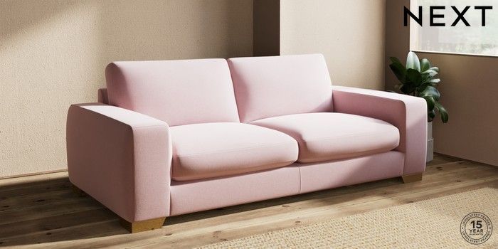 7.2.10 Houghton Deep Sit 3 Seater Sofa Natural Mix Light Rose Pink Large Square Angle - Brushed Brass | Made Click here to use our website with more accessibility support, for example screen readers
