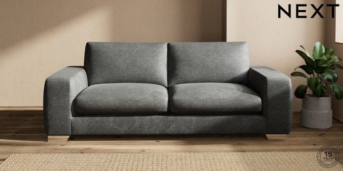 7.2.10 Houghton Deep Sit 3 Seater Sofa Plush Chenille Dark Grey Large Square Angle - Chrome Metal | Made Click here to use our website with more accessibility support, for example screen readers
