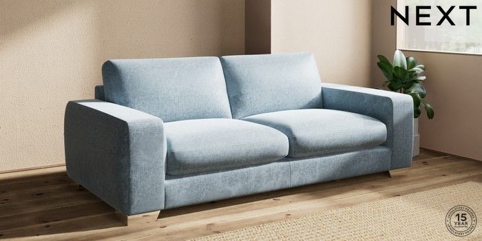 7.2.10 Houghton Deep Sit 3 Seater Sofa Plush Chenille Light Blue Large Square Angle - Chrome Metal | Made Click here to use our website with more accessibility support, for example screen readers
