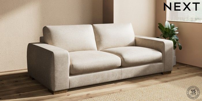 7.2.10 Houghton Deep Sit 3 Seater Sofa Plush Chenille Light Natural Large Square Angle - Mid | Made Click here to use our website with more accessibility support, for example screen readers