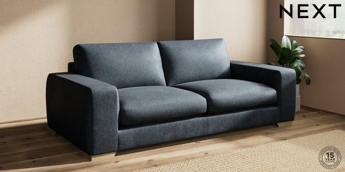 7.2.10 Houghton Deep Sit 3 Seater Sofa Plush Chenille Slate Blue Large Square Angle - Light | Made Click here to use our website with more accessibility support, for example screen readers