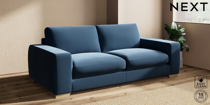 7.2.10 Houghton Deep Sit 3 Seater Sofa Plush Velvet Easy Clean Airforce Blue Large Square Angle - Light | Made Click here to use our website with more accessibility support, for example screen readers