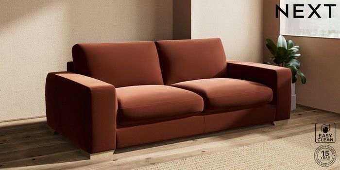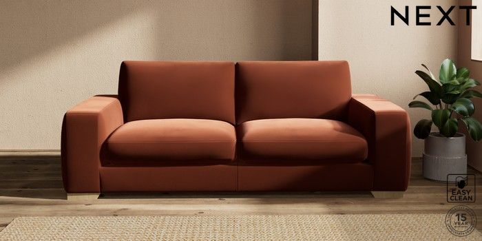 7.2.10 Houghton Deep Sit 3 Seater Sofa Plush Velvet Easy Clean Ginger Orange Large Square Angle - Light | Made Click here to use our website with more accessibility support, for example screen readers