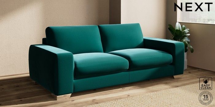 7.2.10 Houghton Deep Sit 3 Seater Sofa Plush Velvet Easy Clean Juniper Green Large Square Angle - Chrome Metal | Made Click here to use our website with more accessibility support, for example screen readers