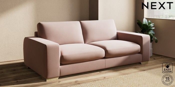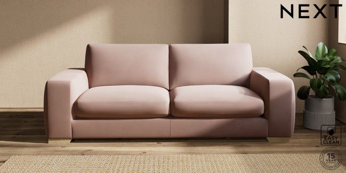7.2.10 Houghton Deep Sit 3 Seater Sofa Plush Velvet Easy Clean Mid Natural Large Square Angle - Light | Made Click here to use our website with more accessibility support, for example screen readers