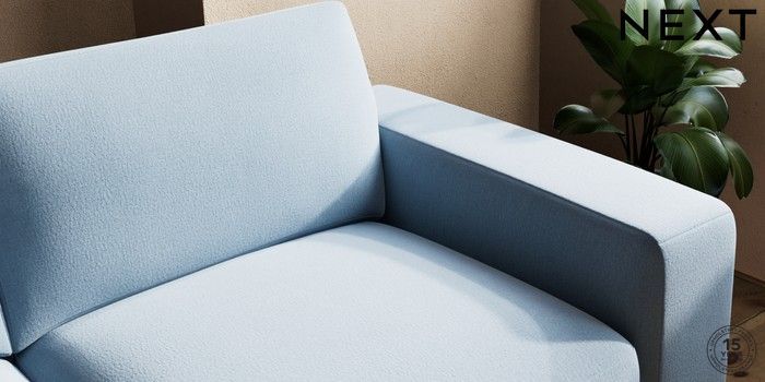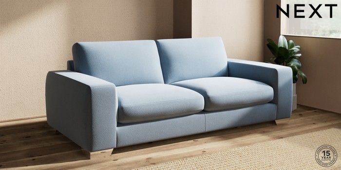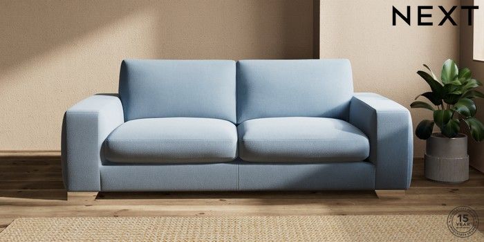 7.2.10 Houghton Deep Sit 3 Seater Sofa Relaxed Linen Look Mid Blue Large Square Angle - Chrome Metal | Made Click here to use our website with more accessibility support, for example screen readers