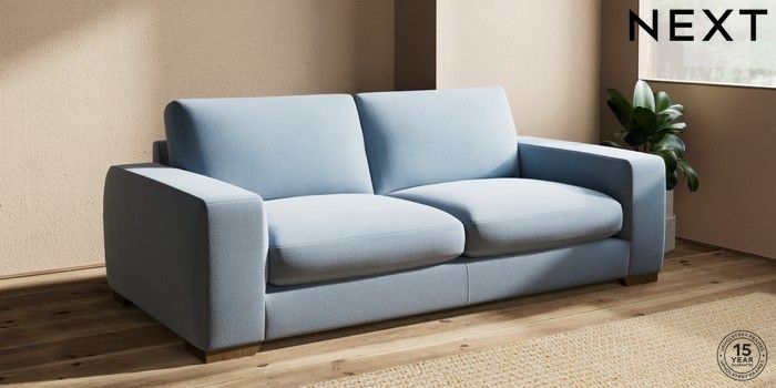 7.2.10 Houghton Deep Sit 3 Seater Sofa Relaxed Linen Look Mid Blue Large Square Angle - Mid | Made Click here to use our website with more accessibility support, for example screen readers