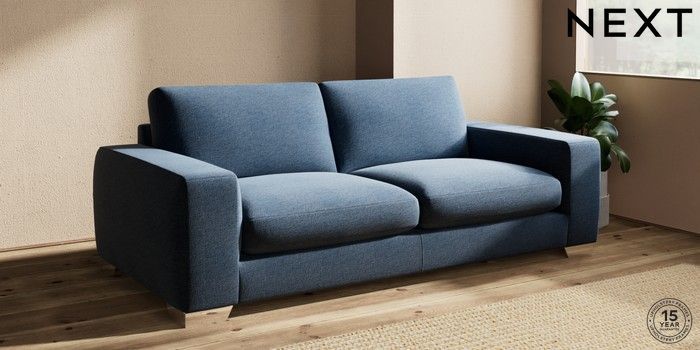 7.2.10 Houghton Deep Sit 3 Seater Sofa Ripple Chenille Dark Blue Large Square Angle - Chrome Metal | Made Click here to use our website with more accessibility support, for example screen readers