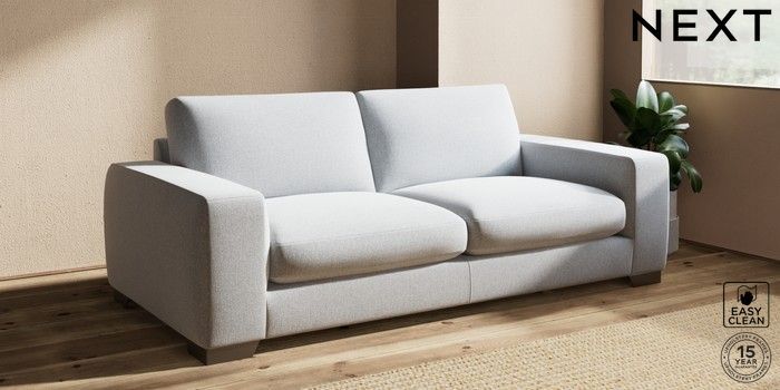 7.2.10 Houghton Deep Sit 3 Seater Sofa Tweedy Blend Easy Clean Light Silver Grey Large Square Angle - Gunmetal | Made Click here to use our website with more accessibility support, for example screen readers