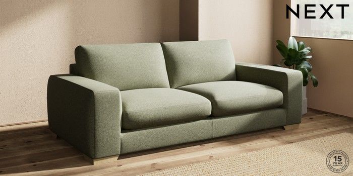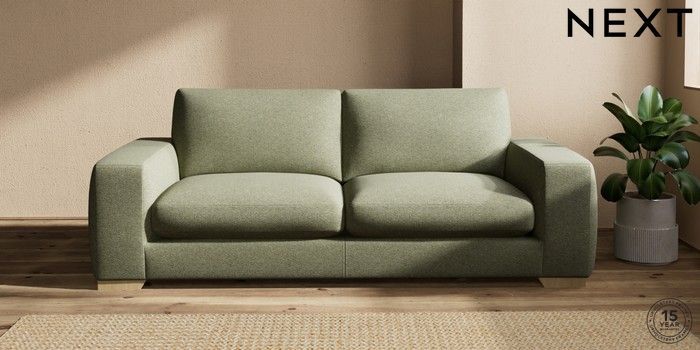 7.2.10 Houghton Deep Sit 3 Seater Sofa Tweedy Chenille Mid Moss Green Large Square Angle - Light | Made Click here to use our website with more accessibility support, for example screen readers