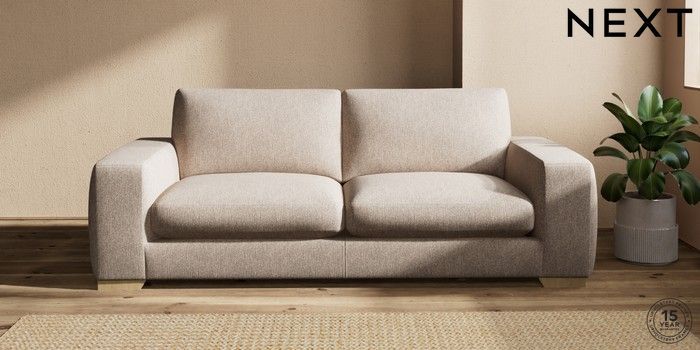 7.2.10 Houghton Deep Sit 3 Seater Sofa Tweedy Chenille Mid Natural Large Square Angle - Light | Made Click here to use our website with more accessibility support, for example screen readers