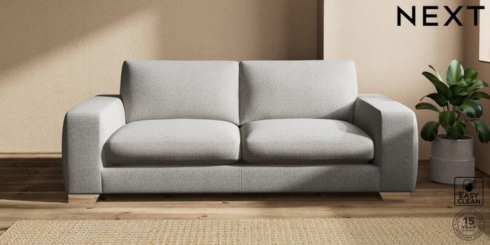 7.2.10 Houghton Deep Sit 3 Seater Sofa Woven Chenille Easy Clean Light Grey Large Square Angle - Chrome Metal | Made Click here to use our website with more accessibility support, for example screen readers