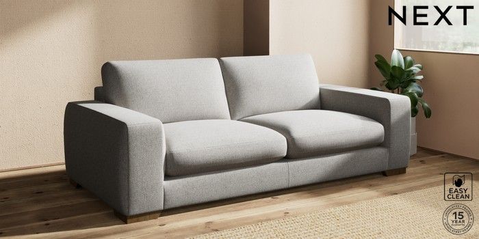 7.2.10 Houghton Deep Sit 3 Seater Sofa Woven Chenille Easy Clean Light Grey Large Square Angle - Mid | Made Click here to use our website with more accessibility support, for example screen readers