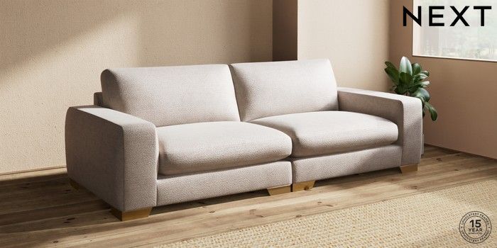 7.2.10 Houghton Deep Sit 4 Seater Sofa Boucle Chenille Light Natural Large Square Angle - Brushed Brass | Made Click here to use our website with more accessibility support, for example screen readers