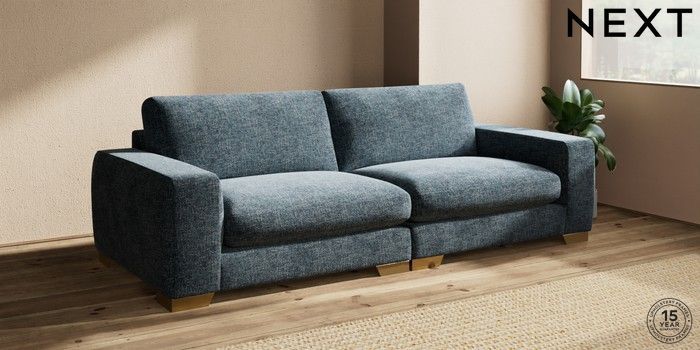 7.2.10 Houghton Deep Sit 4 Seater Sofa Chunky Chenille Dark Navy Blue Large Square Angle - Brushed Brass | Made Click here to use our website with more accessibility support, for example screen readers