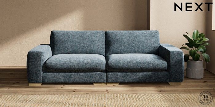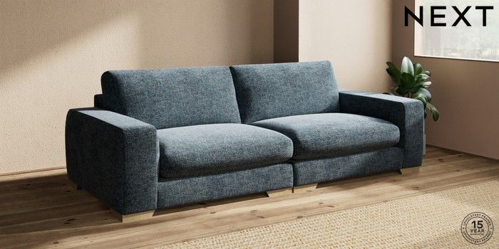 7.2.10 Houghton Deep Sit 4 Seater Sofa Chunky Chenille Dark Navy Blue Large Square Angle - Light | Made Click here to use our website with more accessibility support, for example screen readers