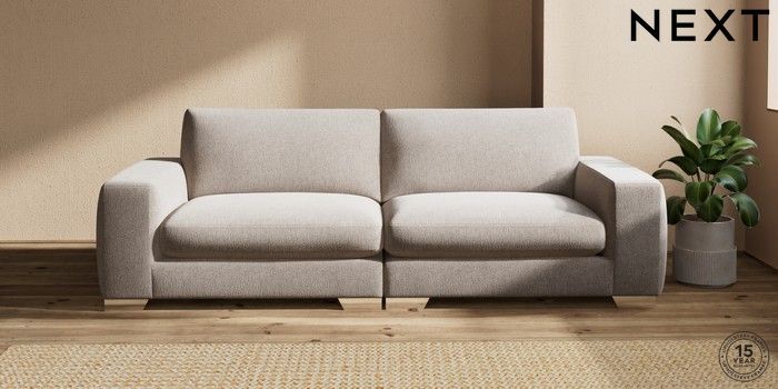 7.2.10 Houghton Deep Sit 4 Seater Sofa Chunky Chenille Light Dove Large Square Angle - Chrome Metal | Made Click here to use our website with more accessibility support, for example screen readers