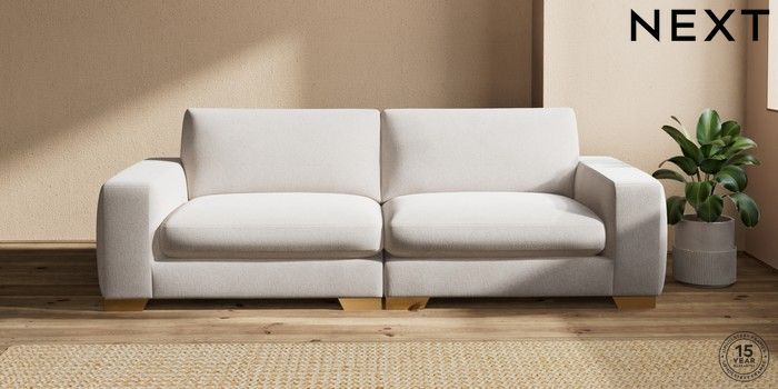 7.2.10 Houghton Deep Sit 4 Seater Sofa Chunky Chenille Oyster Large Square Angle - Brushed Brass | Made Click here to use our website with more accessibility support, for example screen readers