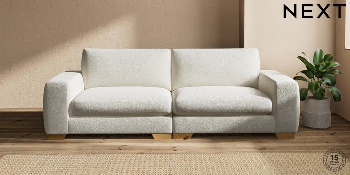 7.2.10 Houghton Deep Sit 4 Seater Sofa Chunky Texture Oyster Large Square Angle - Brushed Brass | Made Click here to use our website with more accessibility support, for example screen readers