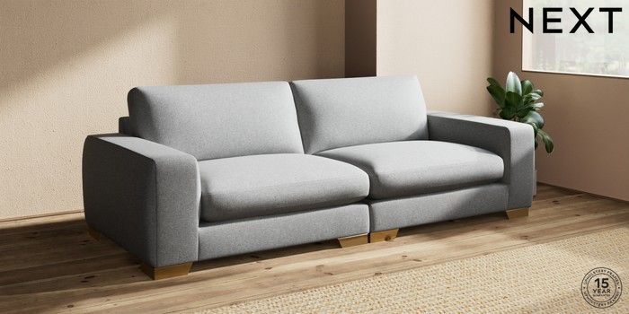 7.2.10 Houghton Deep Sit 4 Seater Sofa Chunky Weave Mid Grey Large Square Angle - Brushed Brass | Made Click here to use our website with more accessibility support, for example screen readers