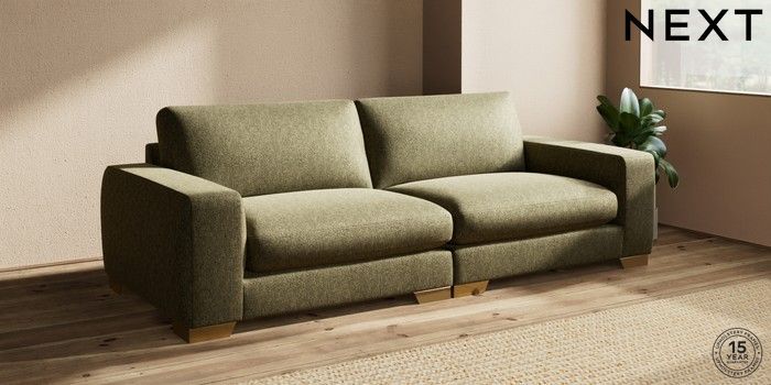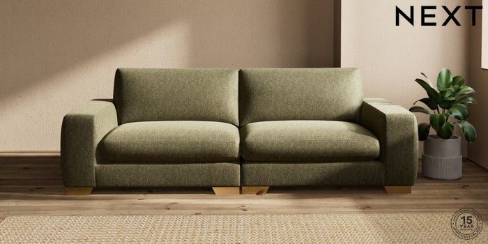 7.2.10 Houghton Deep Sit 4 Seater Sofa Cotswold Chenille Dark Green Large Square Angle - Brushed Brass | Made Click here to use our website with more accessibility support, for example screen readers