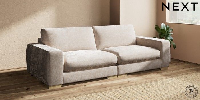 7.2.10 Houghton Deep Sit 4 Seater Sofa Distressed Velour Mid Natural Large Square Angle - Light | Made Click here to use our website with more accessibility support, for example screen readers