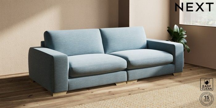 7.2.10 Houghton Deep Sit 4 Seater Sofa Fine Chenille Easy Clean Mid Blue Large Square Angle - Light | Made Click here to use our website with more accessibility support, for example screen readers