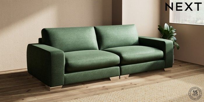 7.2.10 Houghton Deep Sit 4 Seater Sofa Luxe Chenille Dark Green Large Square Angle - Chrome Metal | Made Click here to use our website with more accessibility support, for example screen readers