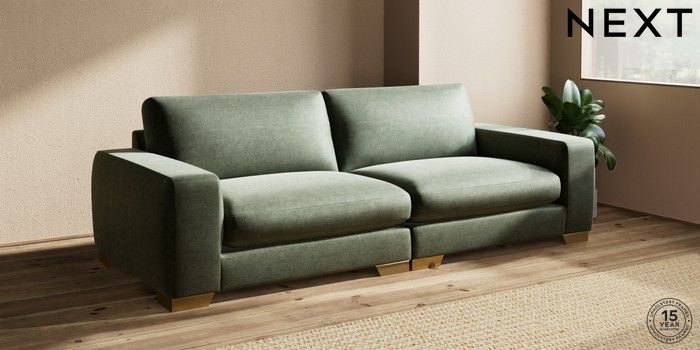 7.2.10 Houghton Deep Sit 4 Seater Sofa Luxe Chenille Mid Green Large Square Angle - Brushed Brass | Made Click here to use our website with more accessibility support, for example screen readers