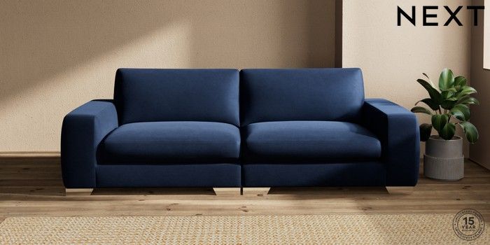 7.2.10 Houghton Deep Sit 4 Seater Sofa Luxe Chenille Navy Blue Large Square Angle - Chrome Metal | Made Click here to use our website with more accessibility support, for example screen readers